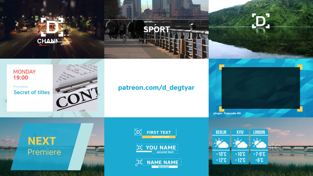 Opener, bumper, logo reveals, lower thirds, backgrounds...